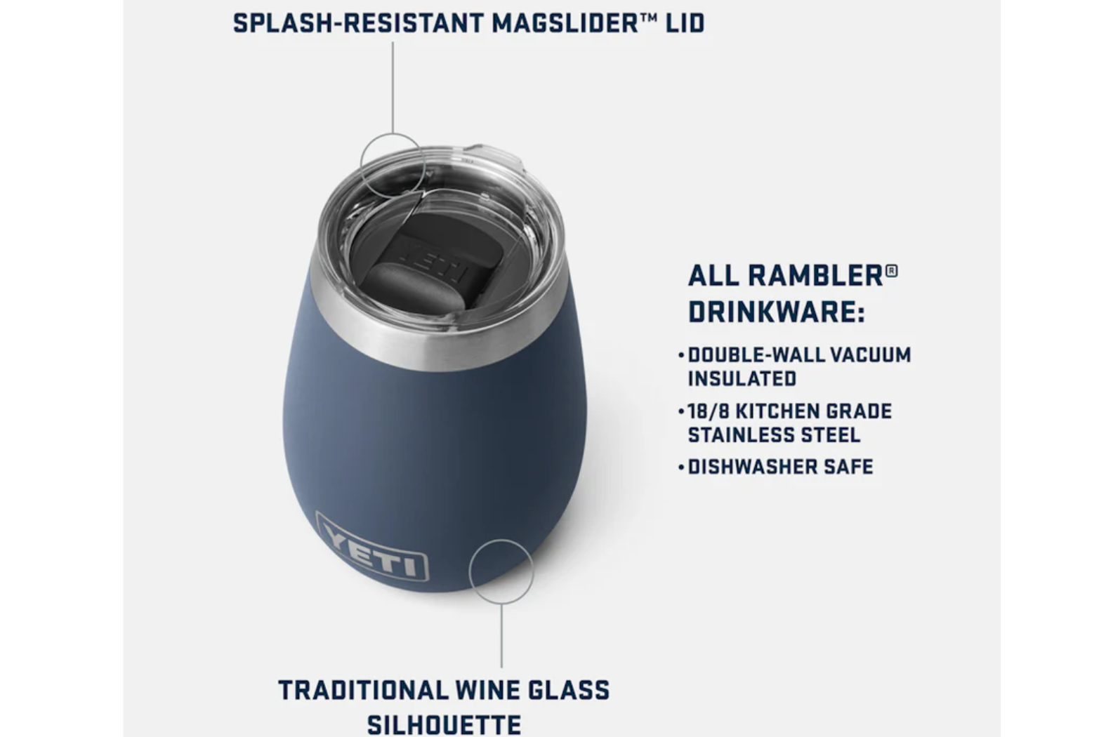 While most things are better outdoors, it’s especially true of wine. But that simple pleasure demanded some serious engineering to ensure no pool deck, happy hour, or boat is hampered by broken glass. Our 10 oz. Wine Tumbler is YETI’s answer to the wine glass and is available in stainless and DuraCoat™ colours. Like the entire Rambler® Family, the Wine Tumbler and included MagSlider™ Lid are dishwasher safe for easy cleaning. The smooth-sliding lid adds an additional barrier of protection to keep your wine contained, at the perfect temperature, and safe from thirsty flies.