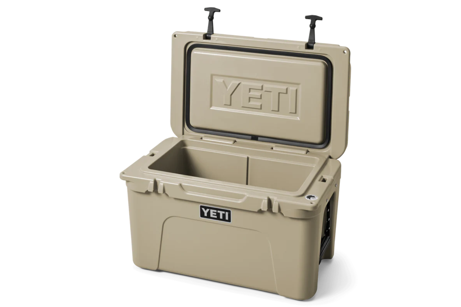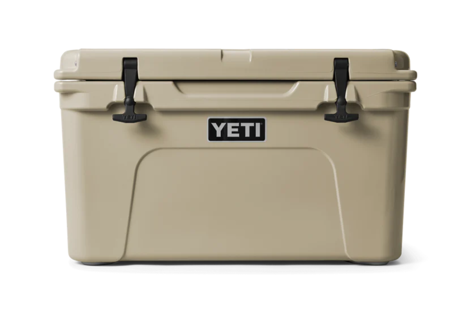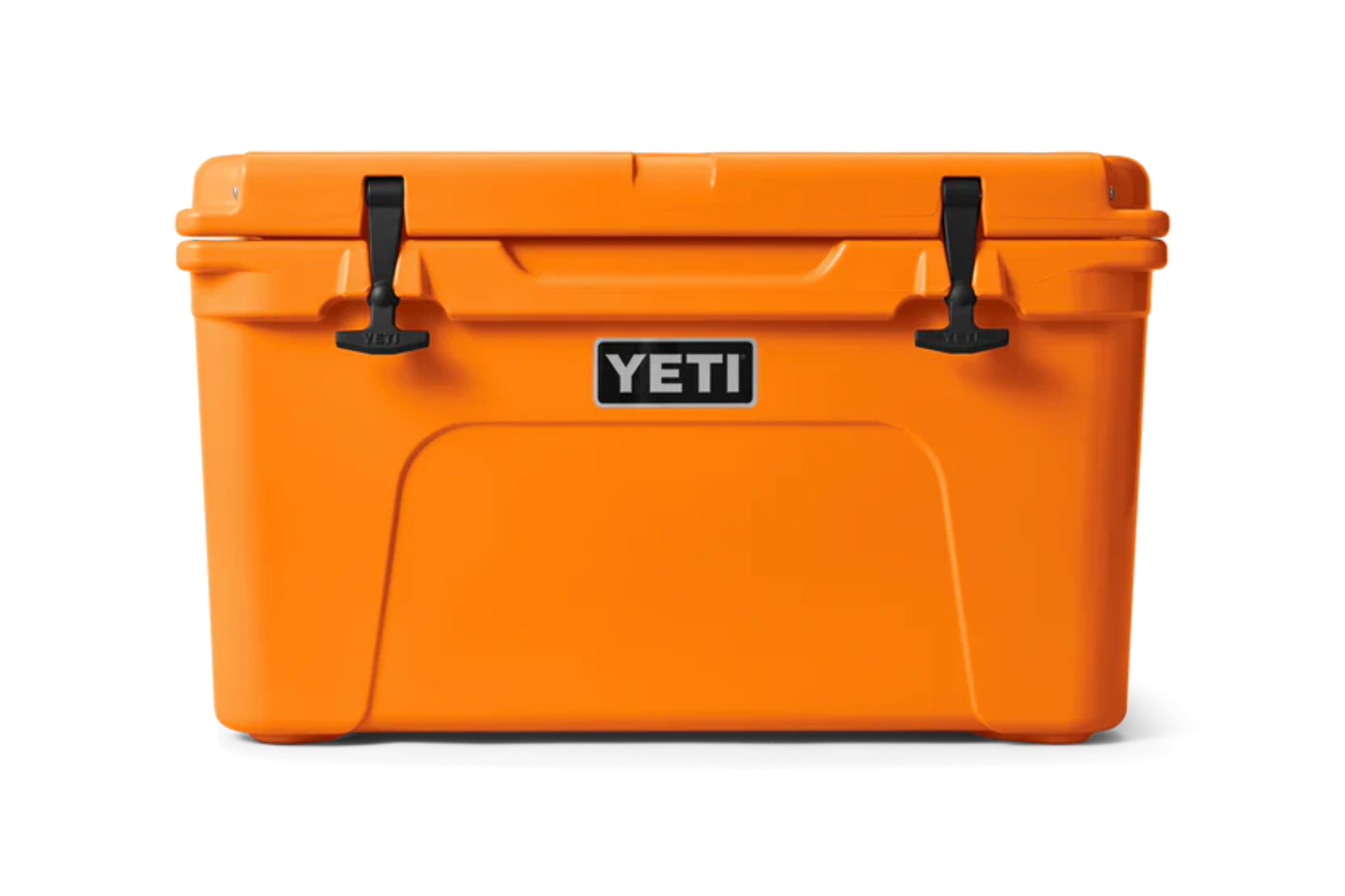 THE YETI TUNDRA 45, A SOLID ALL-PURPOSE SIZE. HOLDS OVERNIGHT CAMP PROVISIONS FOR FOUR PEOPLE OR DRINKS FOR A DAY ON THE WATER.