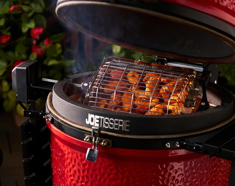 With multiple cooking surfaces and accessories, you can cook with Dutch ovens, woks, griddles, sear grates, pizza stones and much more. And we can’t forget the optional extras, such as the rotisserie, or should we say Joetisserie, to spit roast over flames with multiple attachments.